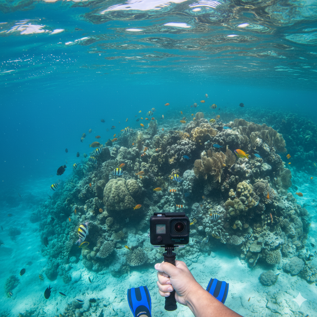 Graba tus aventuras bajo el agua en alta definición. Ideal para snorkel y buceo.